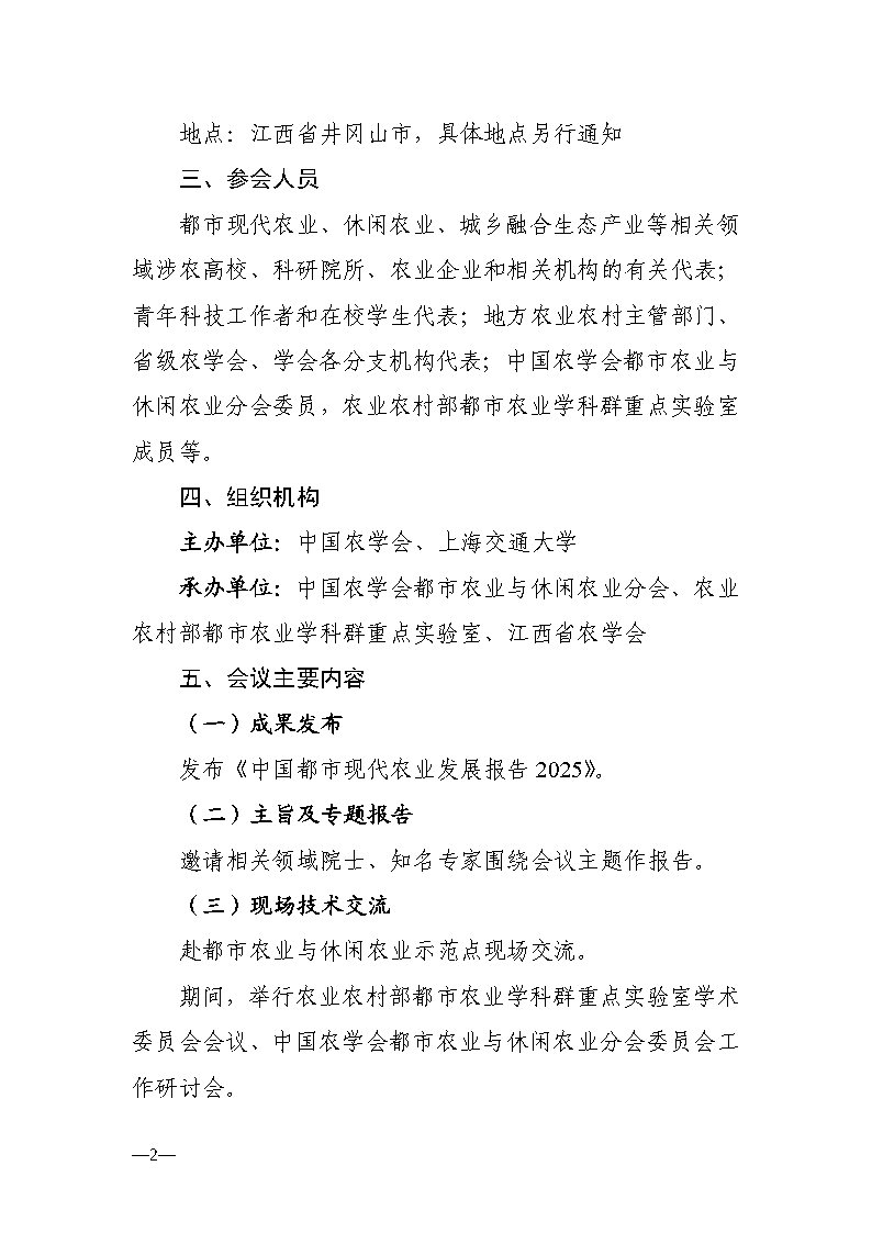 关于举办2025年都市现代农业发展研讨会暨中国农学会都市农业与休闲农业分会学术年会的通知(第一轮)